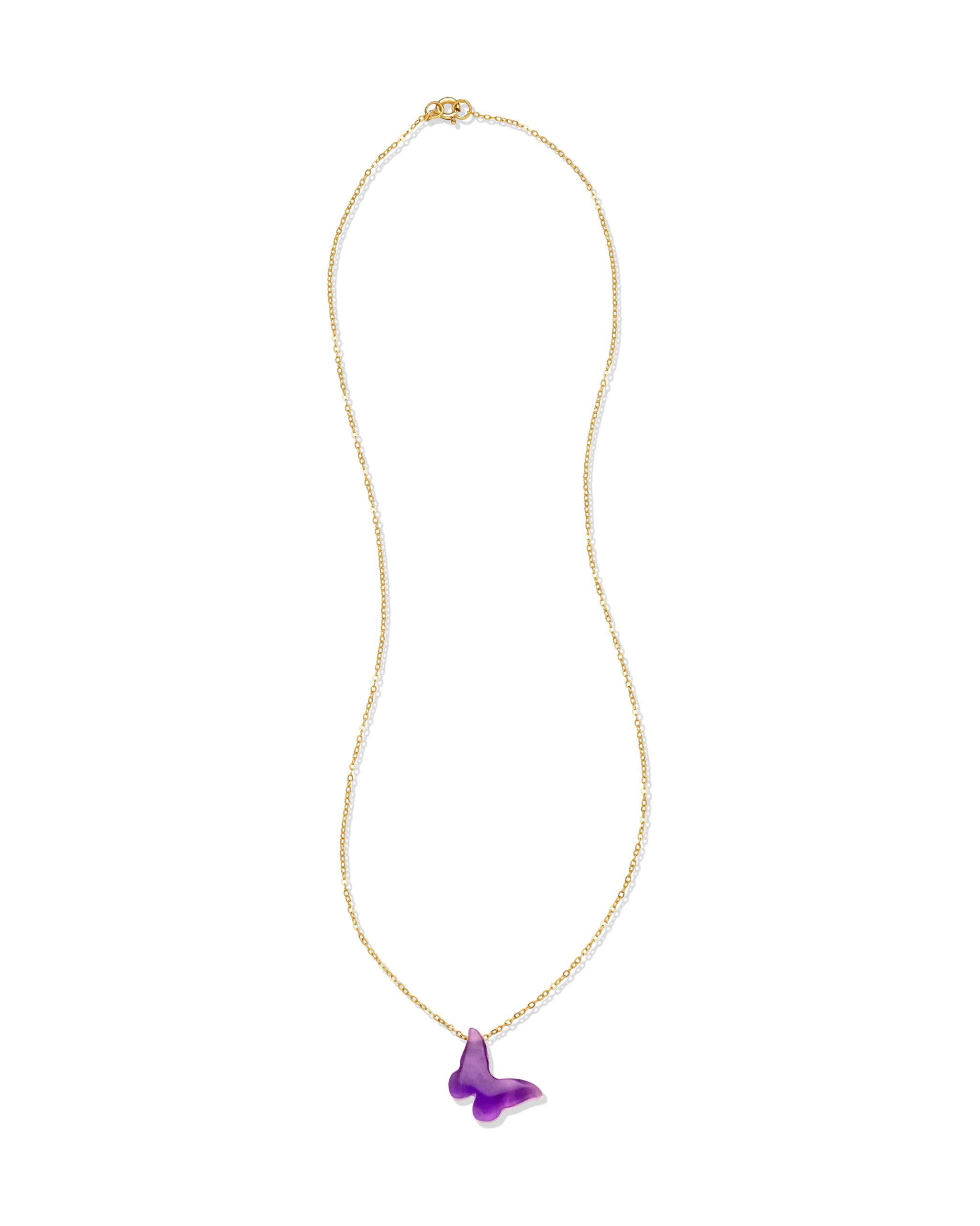 18K Yellow gold necklace with a purple amethyst gemstone pendant in a butterfly cut