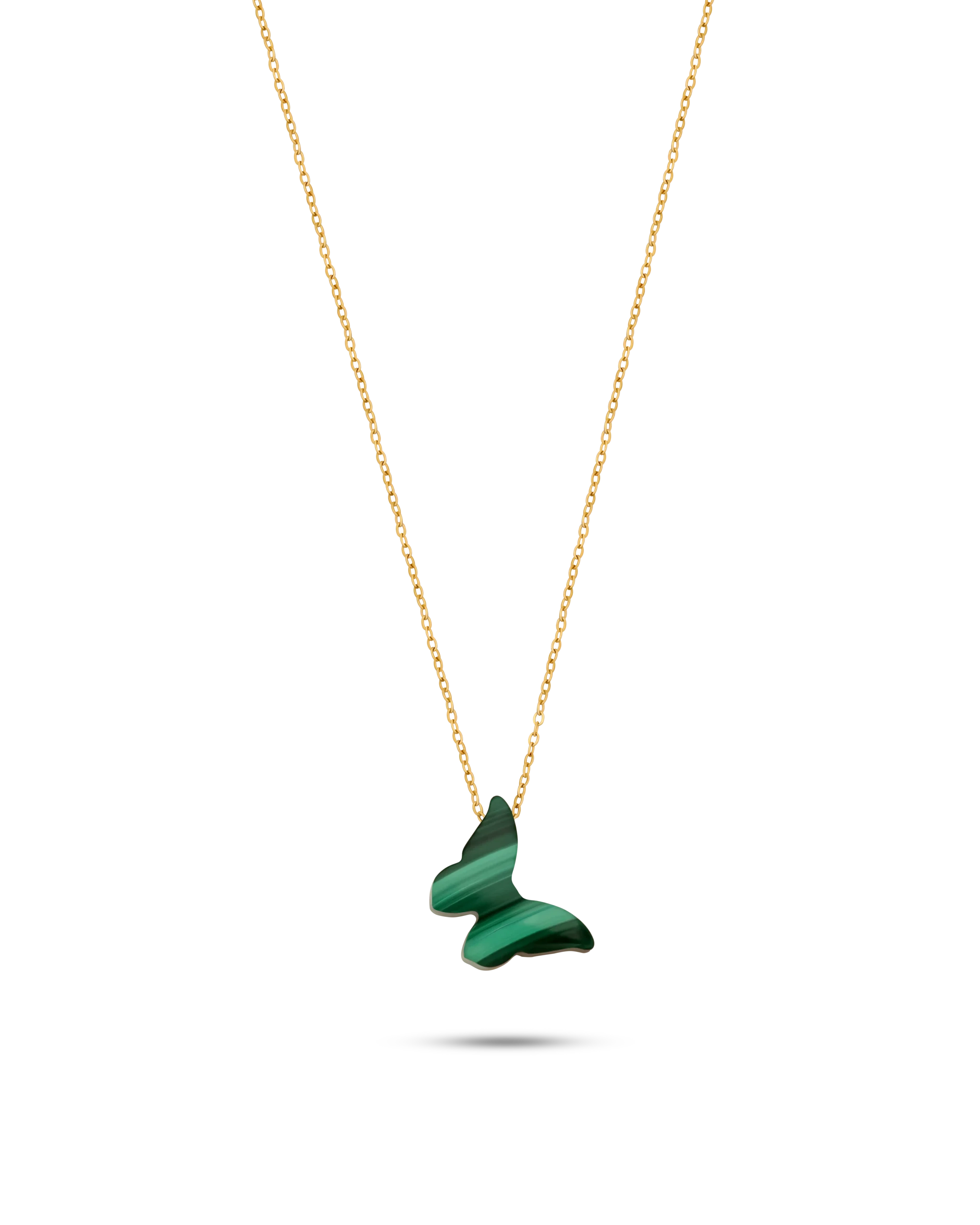 18K Yellow gold necklace with a green malachite gemstone pendant in a butterfly cut